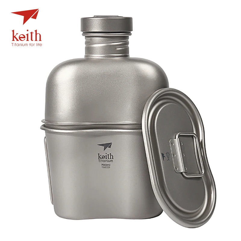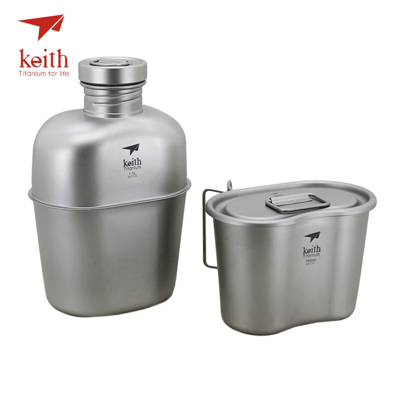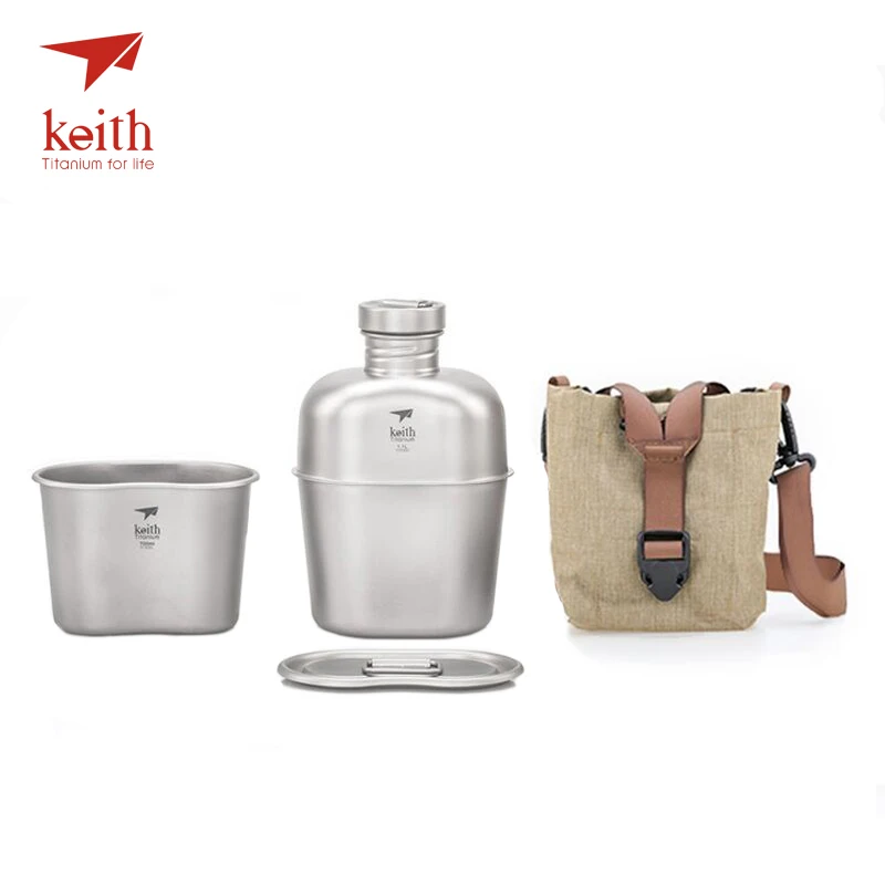 REVIEW TOP SELLER Keith Outdoor Camping Hiking Titanium Dual-use Canteen Military Water Bottle Kettle Cup Pot 1100ml+