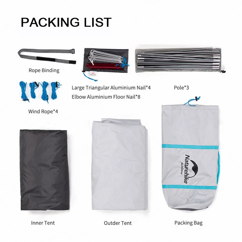 NatureHike 3 person tent 2-door opening design great ventilation family camping tent waterproof and