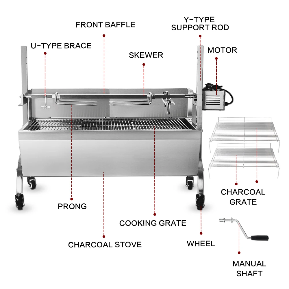 Best Seller Multifunctional BBQ Grills Manual Pig Lamb Roaster Machine Barbecue Grills For Outdoor Camping Stai