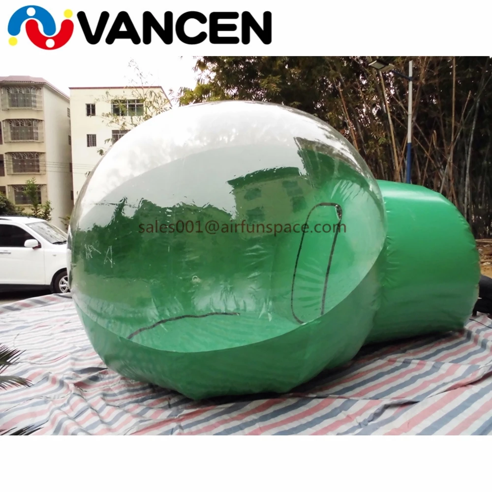 Green hot sale clear bubble tent for camping free air blower 4m diameter inflatable transparent bub